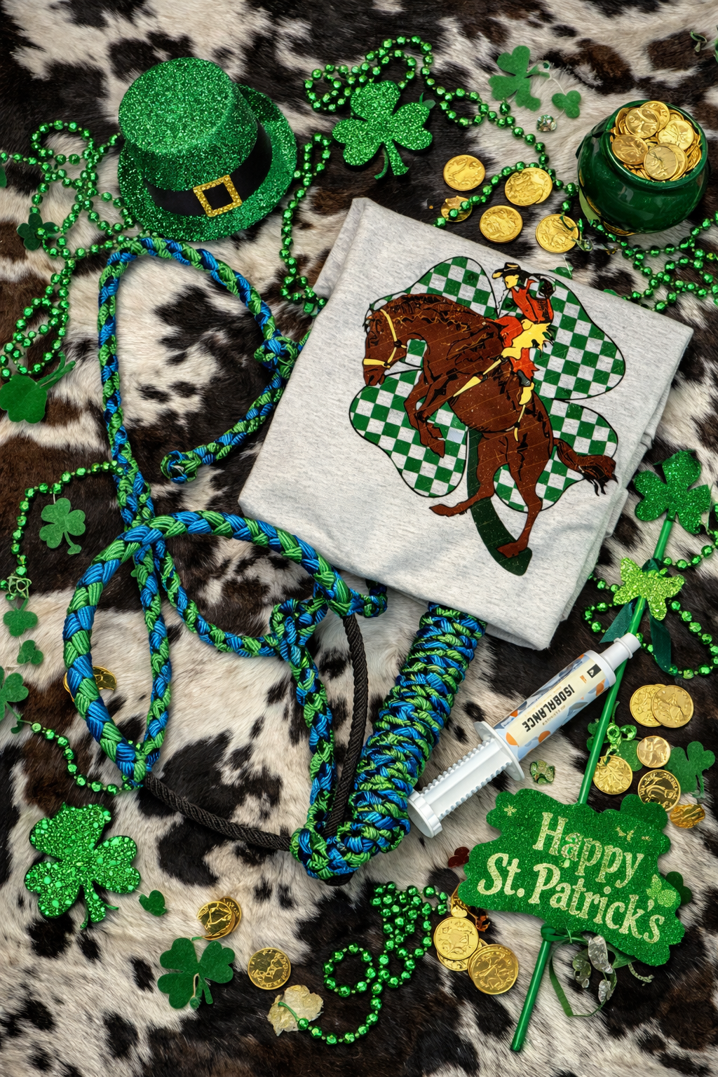 • Gray Crewneck Sweatshirt – Cozy and stylish with a bucking horse design paired with a lucky clover for the perfect St. Paddy’s vibe.