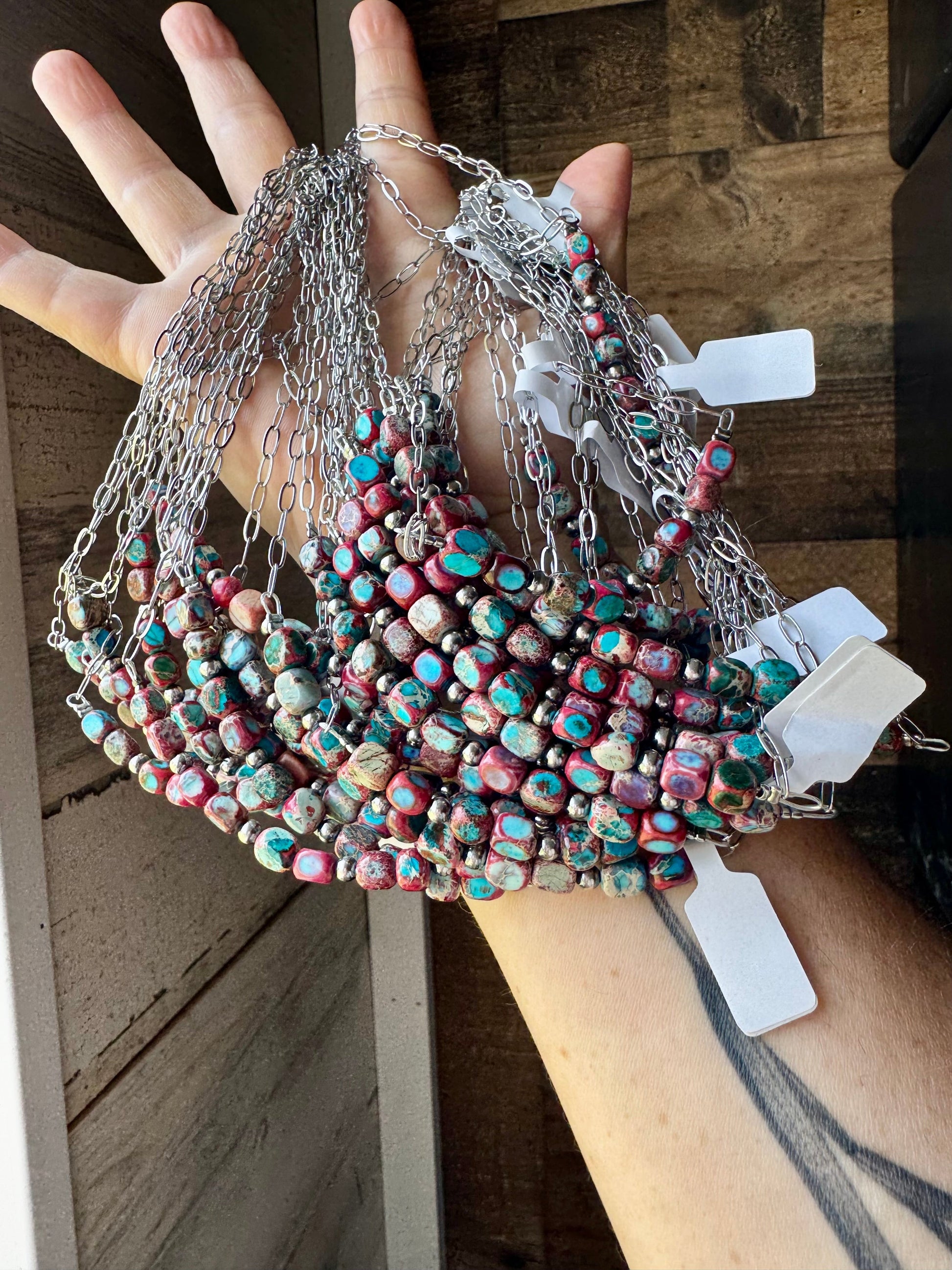 Pink and blue sea sediment gemstone beads